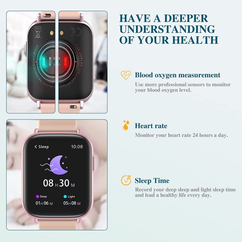 Smart Watches for Men Women,Fitness Tracker with Heart Rate Monitor Sport AMOLED Display Swimming Waterproof Watch for Android/ iOS/Phones, Black